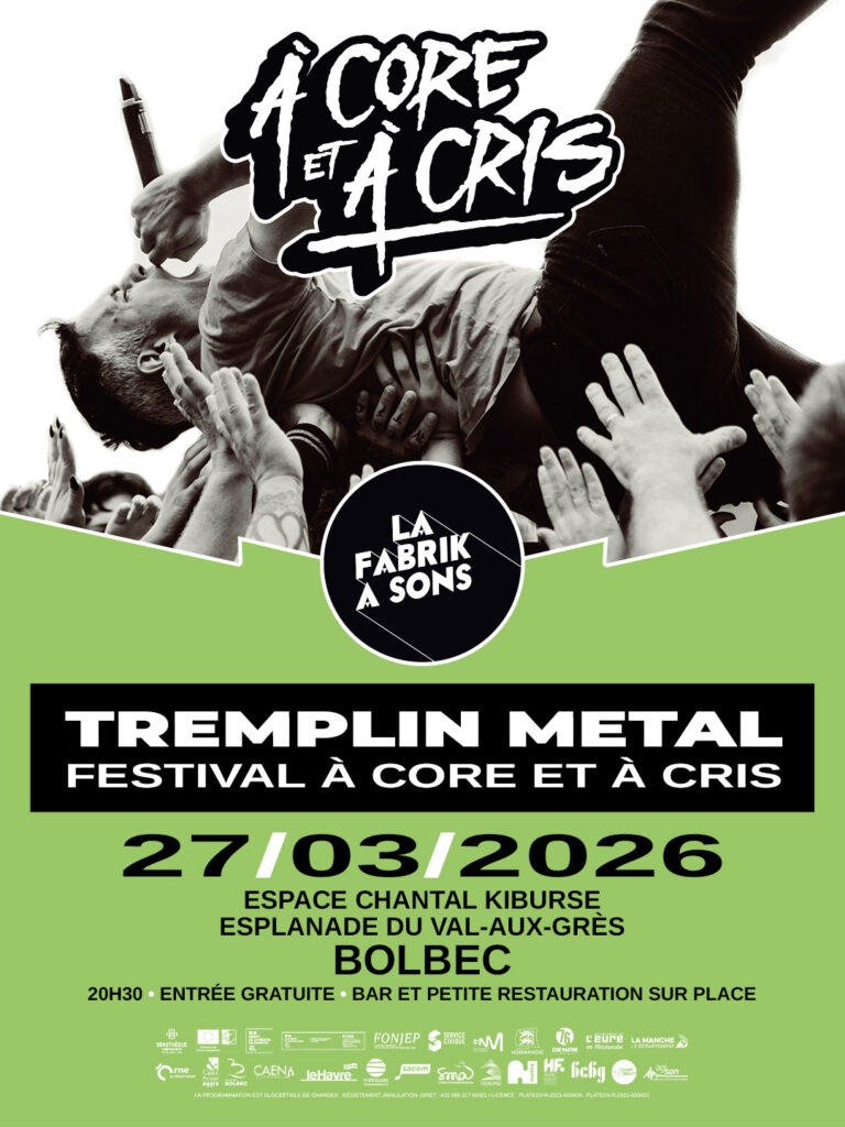 La scène metal normande s’apprête à accueillir un nouveau rendez-vous. Le 12 septembre 2026, le Domaine du Val-aux-Grès à Bolbec (Seine-Maritime) accueillera la première édition du festival À Core et À Cris, un événement porté par ENOLY Production et pensé comme un festival open air à taille humaine, capable de rassembler amateurs de metal, de hardcore et de rock énergique autour d’une programmation mêlant groupes émergents et formations confirmées.